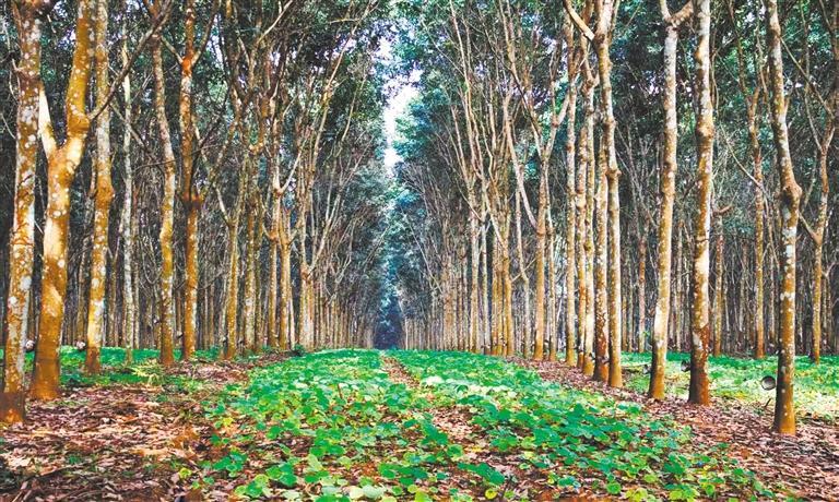 正在距离西双版纳傣族自治州景洪市环城北约1公里处,记者见到云南省热带做物科学研究所占地1054亩的敌对型生态胶园千亩试验示范基地。这里将橡胶树种植行距从保守8米扩大到20米以上,正在橡胶树间套种上述经济做物。如斯结构,即便橡胶行情欠好,颠末细心筛选套种的其他经济做物也能取得不错的经济效益。
